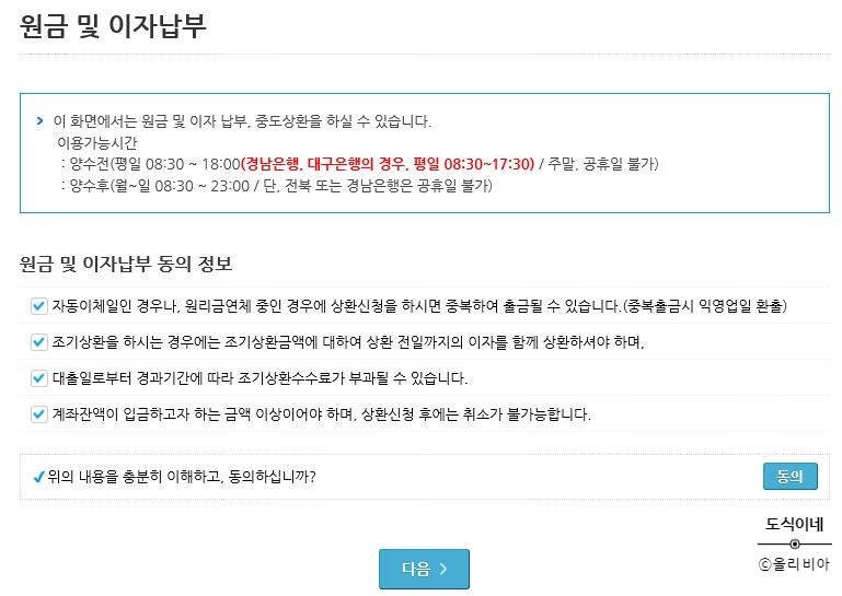 원하시는 상환내역이나 금액 체크하신 후