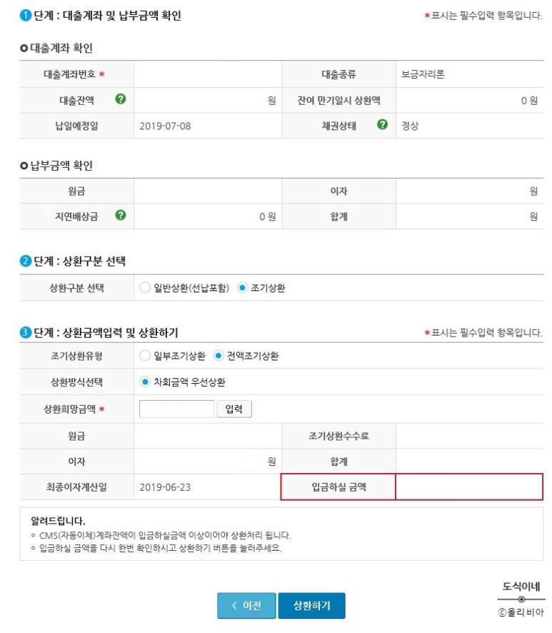 대출금 중 일부를 #조기상환 해볼까 해요.